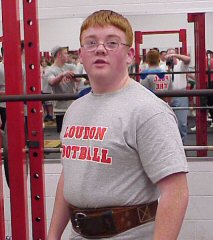 On Thursday, March 18, the LHS football field house was alive with the smell of sweat, the sound of clanging iron, and the animal sounds of extreme effort! The football team has spent the winter in the weight room, in preparation for the fall 2004 campaign; they were out to showcase their achievements. Three exercises were performed: Bench Press, Hang Cling, and Squats. Each player worked hard to achieve maximum lifts during these workouts.